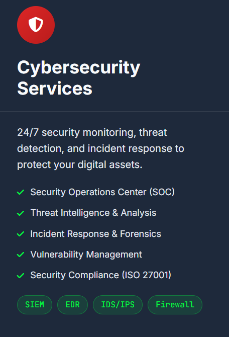 Comprehensive cybersecurity solutions tailored to protect your business from evolving threats